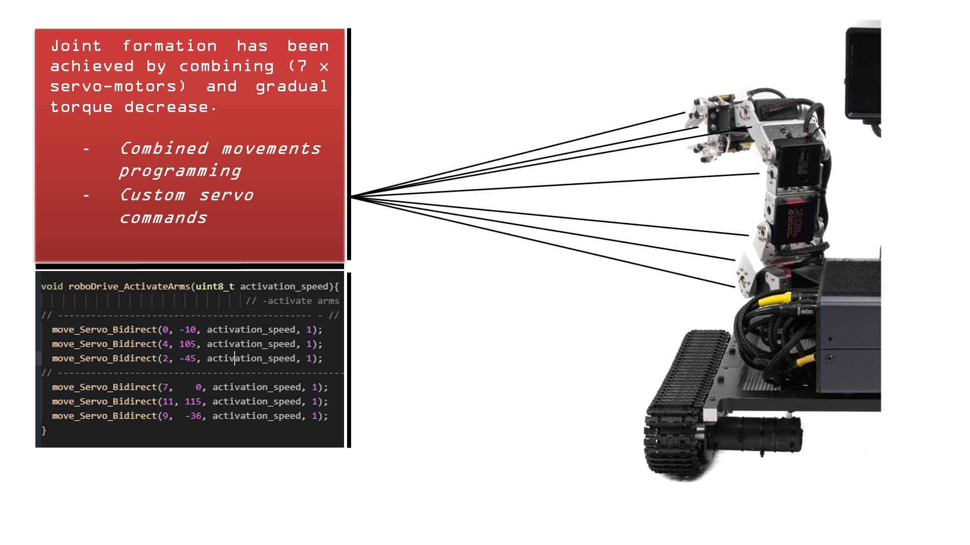 On the other hand, the arm movement can be programmed in advance, to be called later upon request via “roboDrive” console. Still the single servo-motor communication channel will be preserved and kept operational.